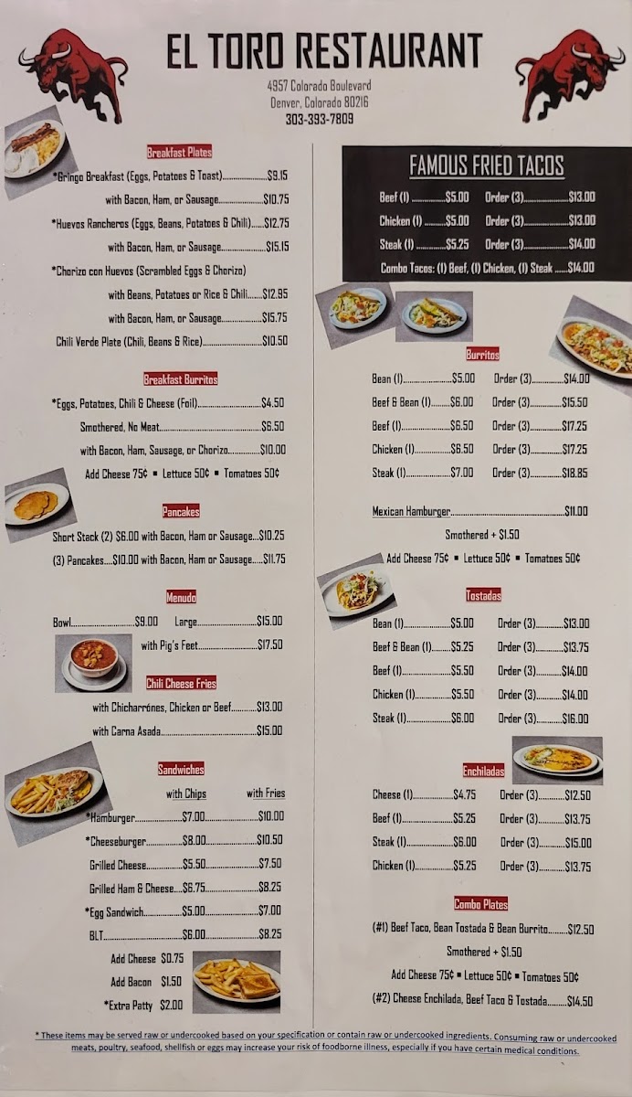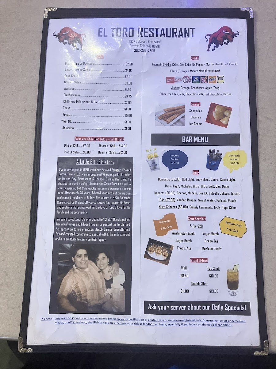 Introducing the menu at EL TORO - Denver, a vibrant culinary destination located at 4957 Colorado Blvd. Renowned for its lively atmosphere, this restaurant stands out for its exceptional taco offerings that patrons rave about.